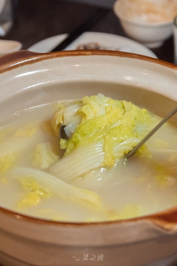 最後的娃娃菜湯,即便湯頭口感濃郁,但喝起來相當清爽,娃娃菜軟嫩,作為結尾溫暖了整個身子,即便在夏日裡,喝到這樣的熱湯一樣感到舒適。