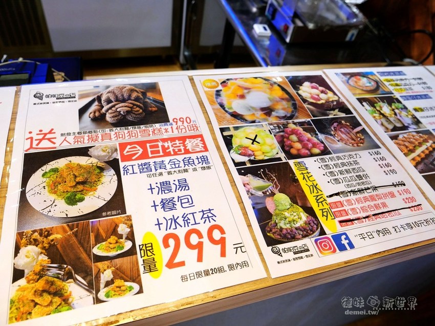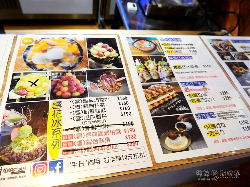 但也有豐富的雪花冰以及雞蛋仔可選,近期更增添了主餐(義麵/燉飯/焗烤)系列,
