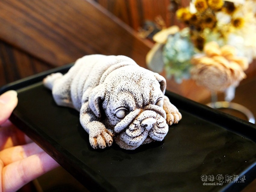 巴哥犬趴臥的模樣超級可愛,維妙維肖的卡哇伊造型讓人頗捨不得破壞。