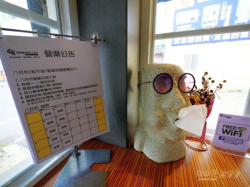 店門口就能看到摩艾石像在迎客,店內角落擺放的面紙盒也是可愛摩艾,
