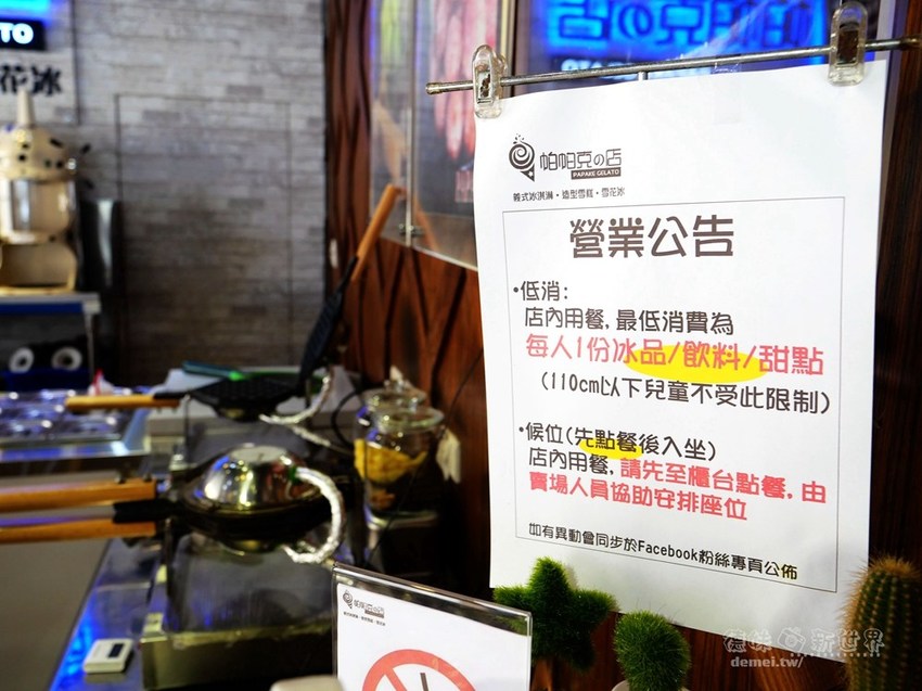 低消:店內用餐,最低消為每人一份冰品/飲料/甜點
