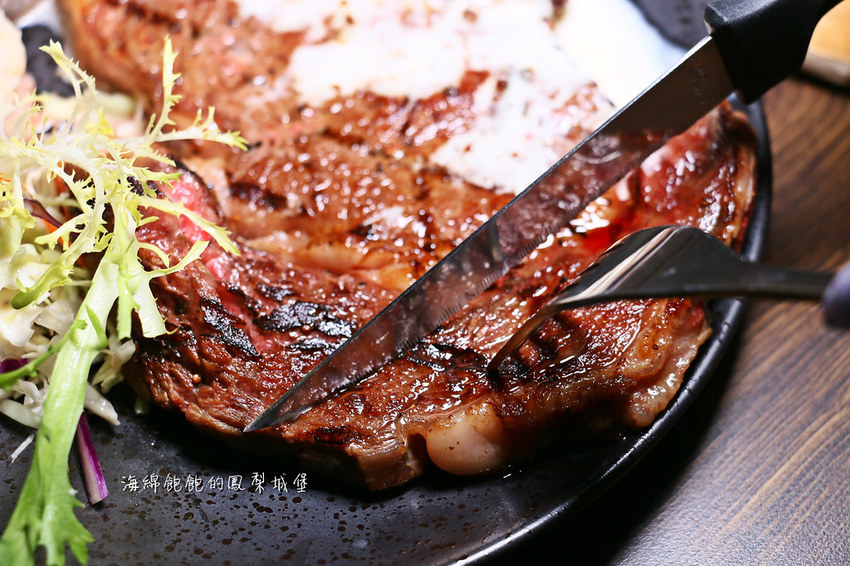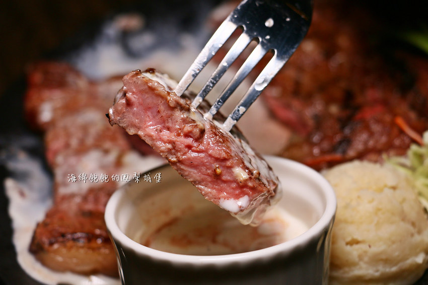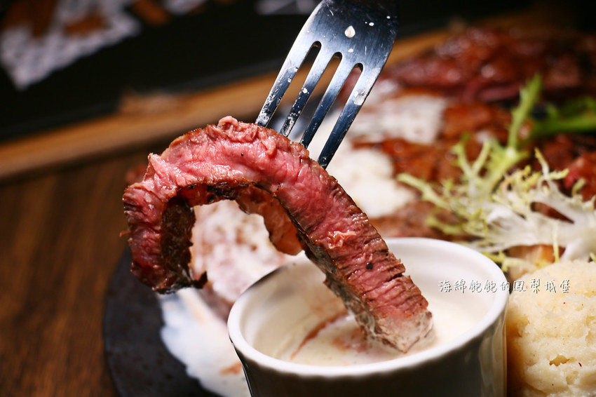 牛排切開的粉嫩色澤超迷人,熟度約莫5分左右