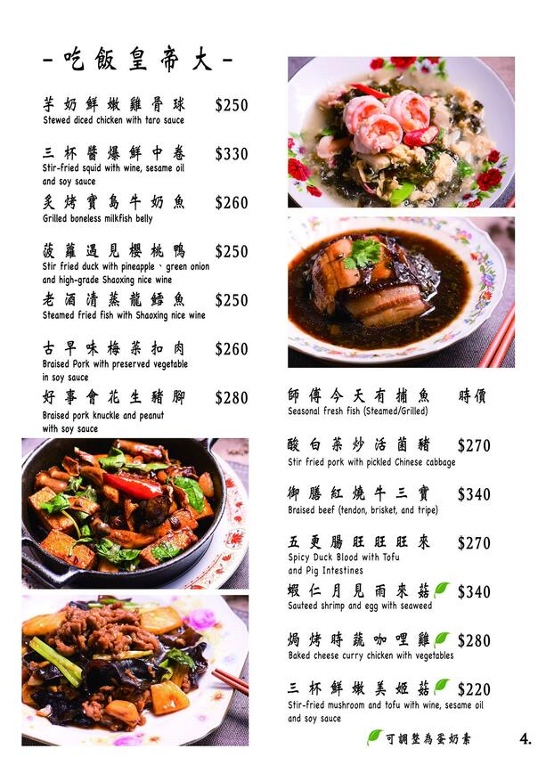 📍 第三站|馨苑小料理主要菜單(載至Facebook粉絲專頁)