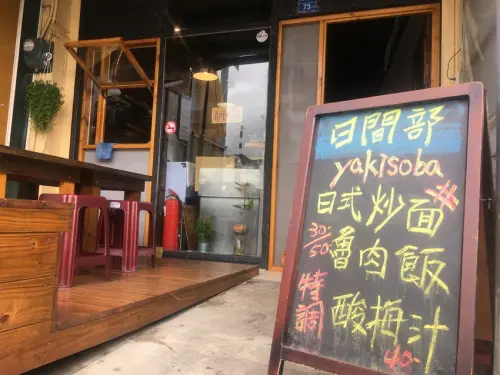 店名取的挺有意思的,為「日間部」能與深夜食攤相呼應阿!! 一個賣日間部一個夜間部,招菜單很簡單就幾樣,滷肉飯、日式炒麵 跟幾樣飲料。 點單上面印有「深夜食攤。日間部」會不會之後出現「深夜食攤。校本部」呢? 想想感覺挺好玩的。