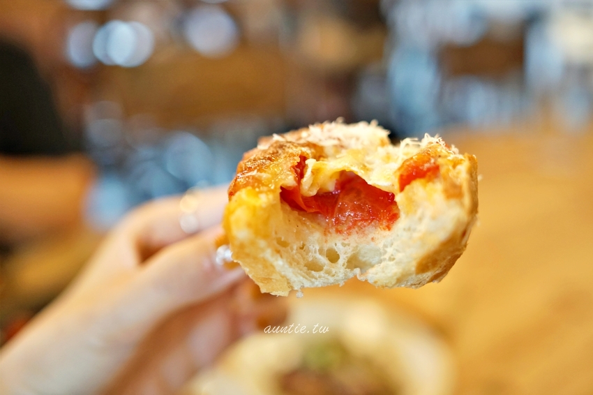本來想說不就是蕃茄麵包加起士,沒想到看起來很簡單但是味道很驚人耶,而且就算冷掉也很好吃。咬開麵包裡頭也夾著番茄,而且他們用的番茄吃起來甜味比酸味多,還有黑橄欖的香氣,加上麵包外酥內軟,真的非常好吃,回家還在想念這道呀!