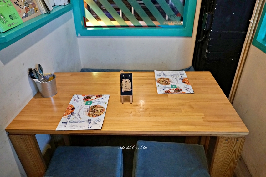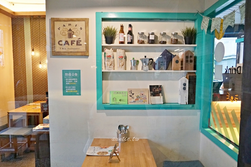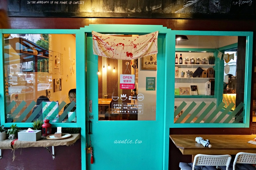 小市場咖啡就位於源遠市場入口處,藍綠色的窗戶,有點像是以前眷村的古早窗,看到有點懷念。