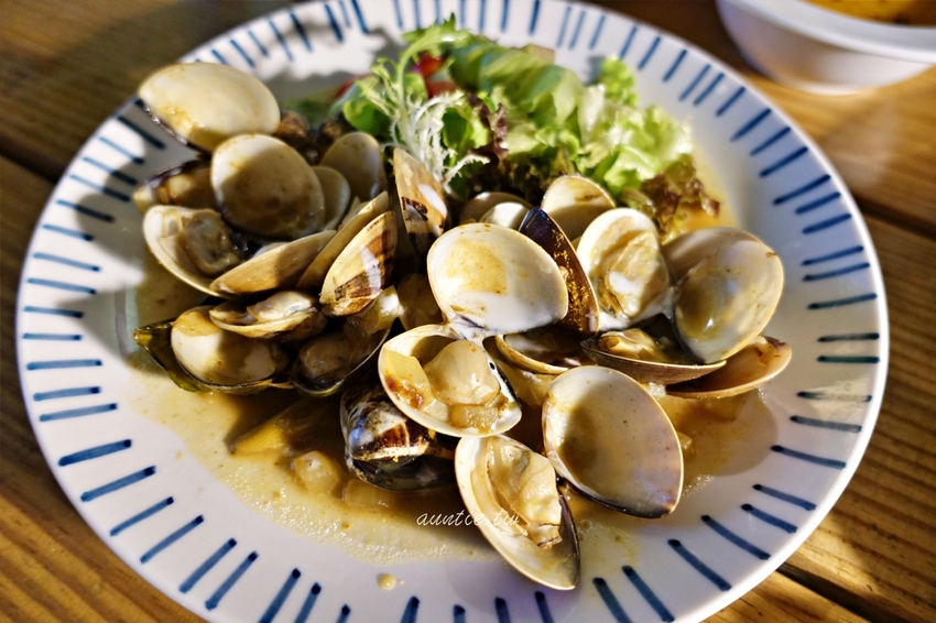 蛤蠣很新鮮又飽滿,咖哩口味吃起來有點像是阿華炒麵的那種台式咖哩的口味,帶著香氣但又不會搶掉蛤蠣的鮮味。
