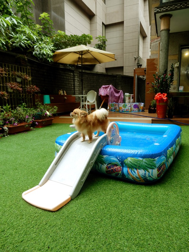 完全是寵物七星級餐廳,毛小孩專屬遊樂園:狂奔在綠意的戶外庭院跟遊樂園裡花樣玩耍。