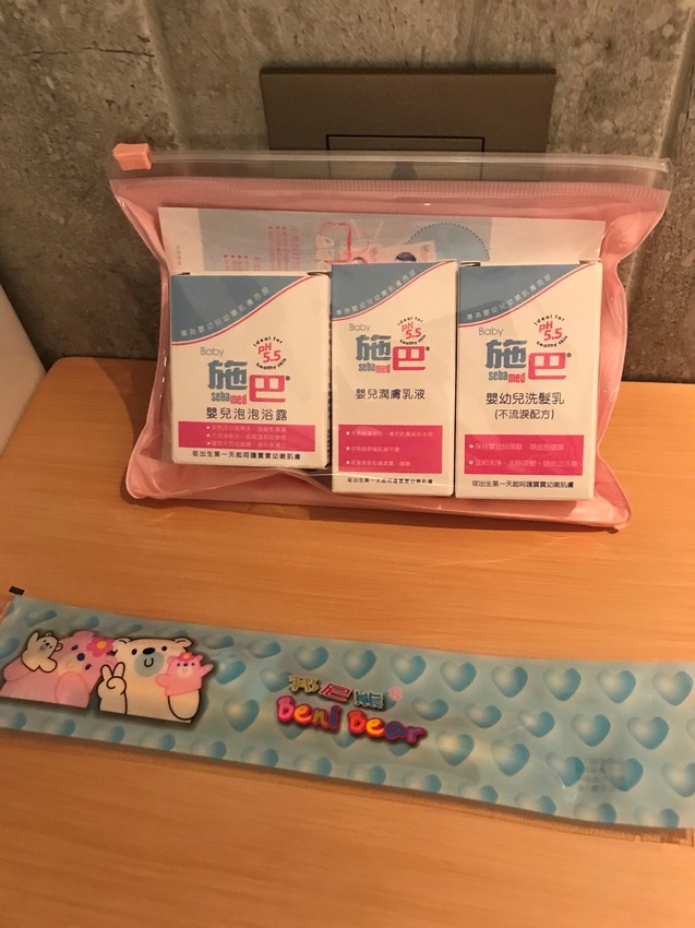 飯店有貼心的為孩子準備了施巴沐浴組和兒童牙刷! 是不是很大心呢!!