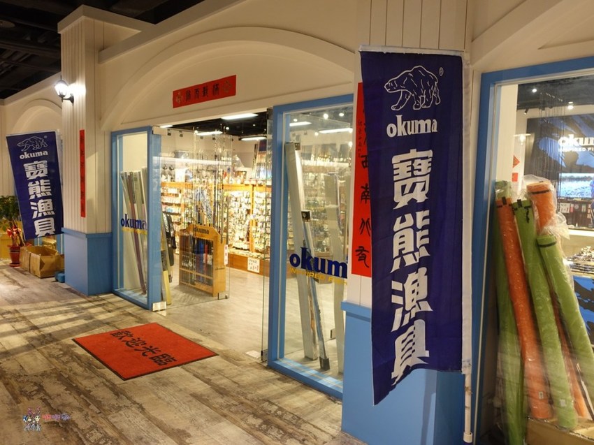 後面則有okuma寶熊漁具的商店,這個寶熊漁樂碼頭也是寶熊漁具所設立,三樓是製造漁具的工廠,不過目前還沒開放參觀。聽說寶熊是釣魚界的大品牌,因為我沒有在釣魚比較不懂,熱愛釣魚的人不妨就來逛逛囉!