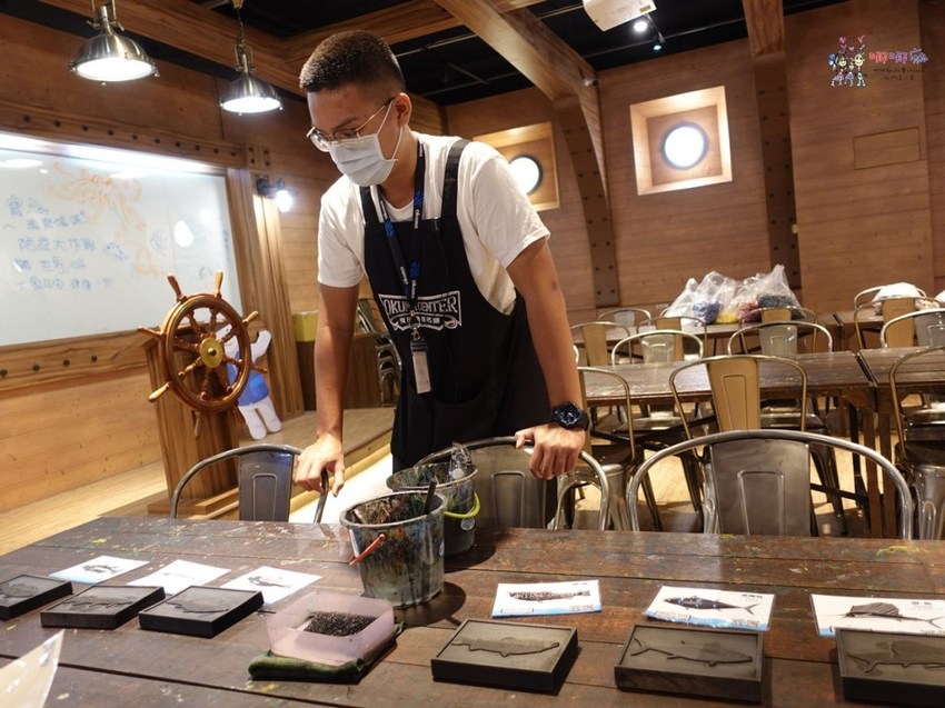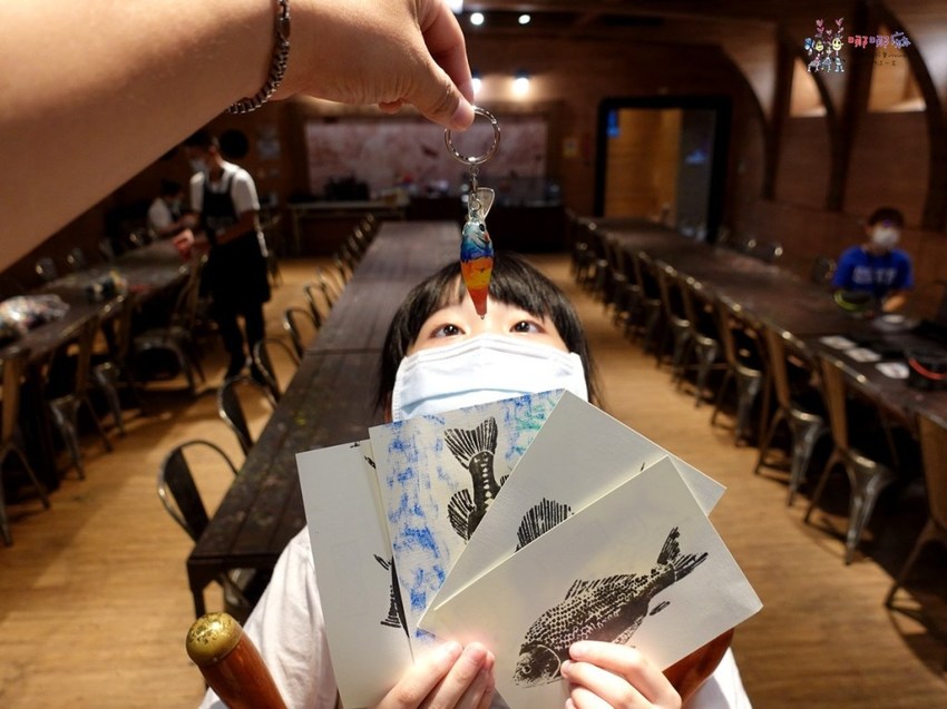 釣完魚我們就要來做我們的DIY,這部份分成兩種,一種是50元的魚拓明信片,可以自己製作有趣的魚拓然後寄給家人或朋友,這邊還有免費代寄的服務,做完把收件人資訊填好投入指定郵筒就可以囉!