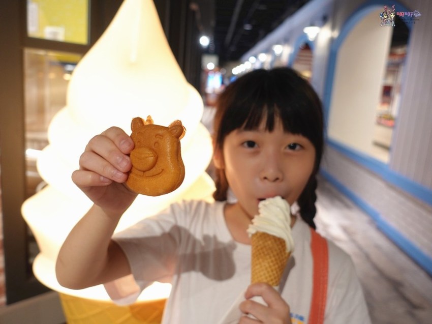 我們看來看去買了BOBO點心鋪的寶熊造型雞蛋糕還有霜淇淋,算是這邊比較便宜的銅板價美食,可以先墊墊肚子。