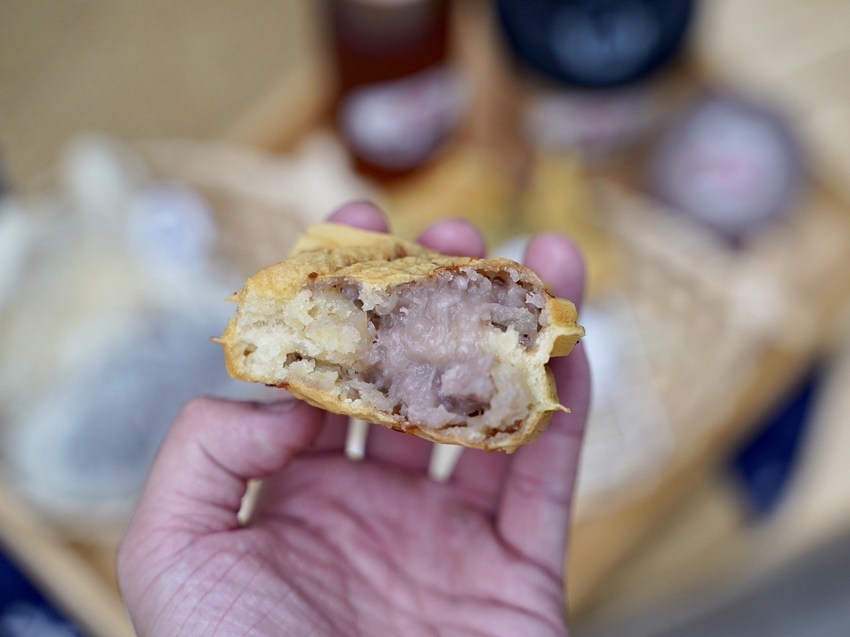 個人蠻喜歡巧克力卡士達口味,甜而不膩,搭配著薄脆外皮真的很合適!大甲芋頭也是香濃不膩口~白Q外皮的紅豆是選用萬丹紅豆,內餡也是甜而不膩。
