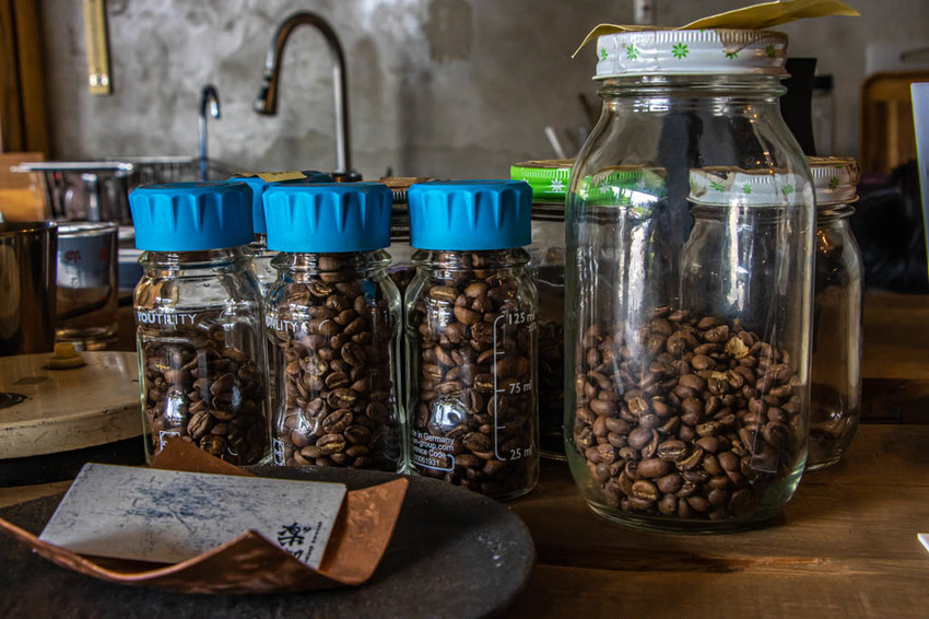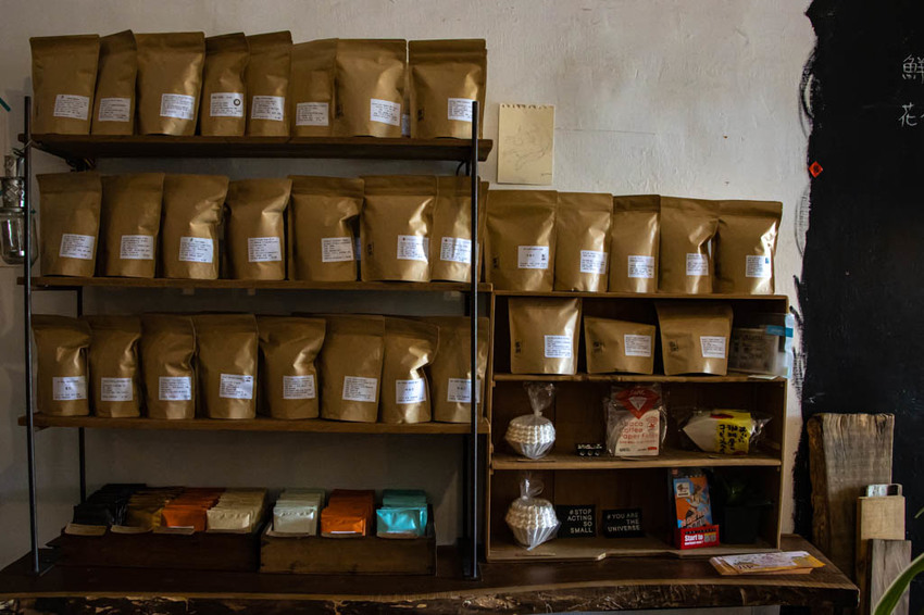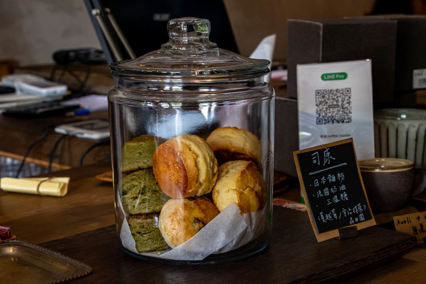 店內放置了許多咖啡豆與自製的烘焙品。