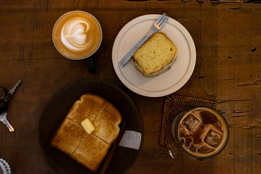 我們今日點了杯卡布奇諾、榛果拿鐵、檸檬磅蛋糕與鮮奶吐司。