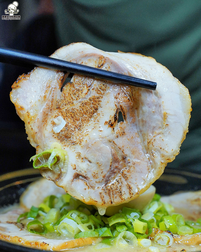 炙燒過的叉燒油脂都被逼出來,整個滲入豚骨湯頭上,焦香滋味讓豚骨湯頭更加好喝