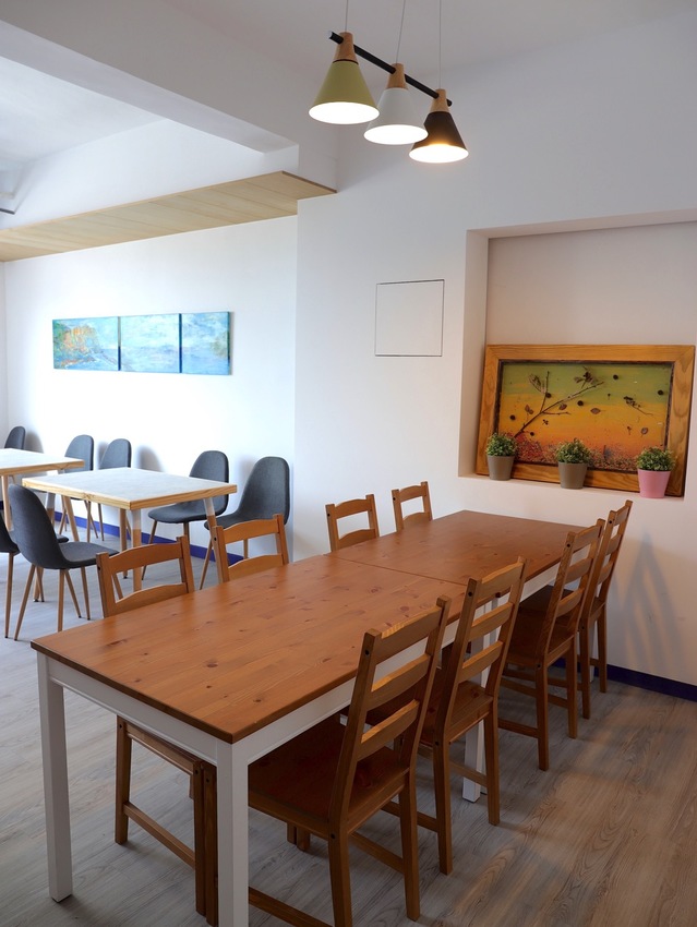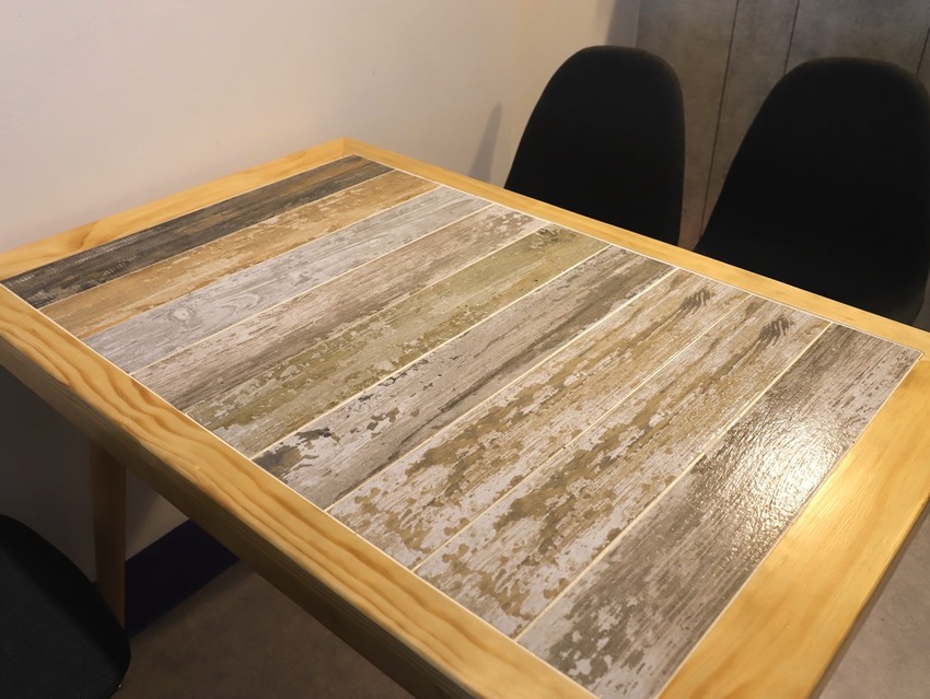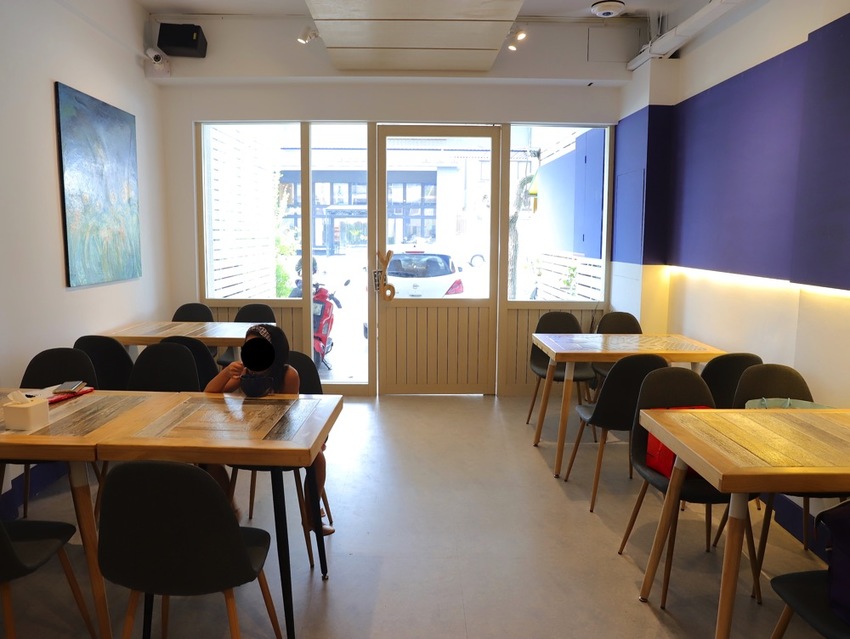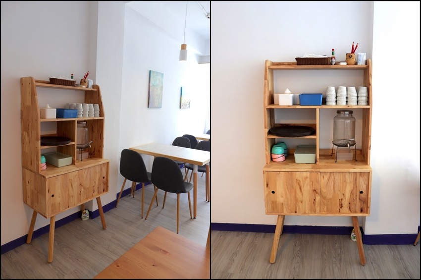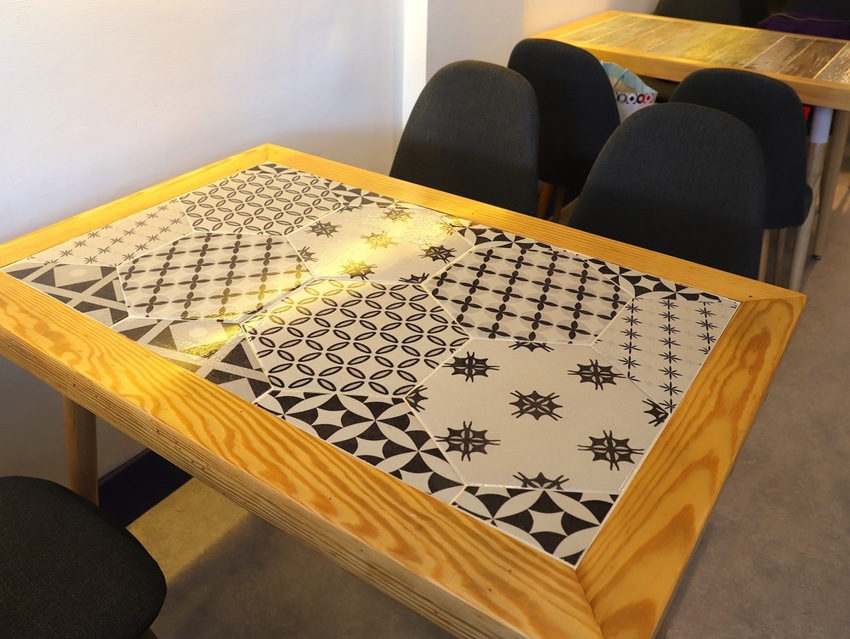 連餐桌都是店家特別挑選搭配,木質餐桌中間有的是鑲各色木條、有的是六角馬賽克磚~非常別緻!一問之下,原來是老闆自己親手製作的!難怪看起來非常獨一無二!