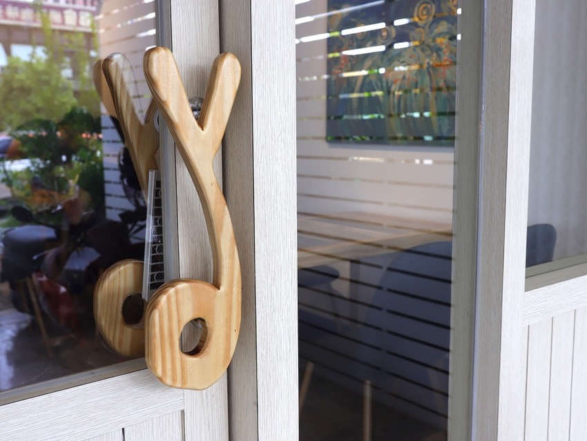 店家門把也很有巧思,配合店名:《YO義思》,找了yo字母裝飾呢!木製門把摸起來質感也很好ㄟ