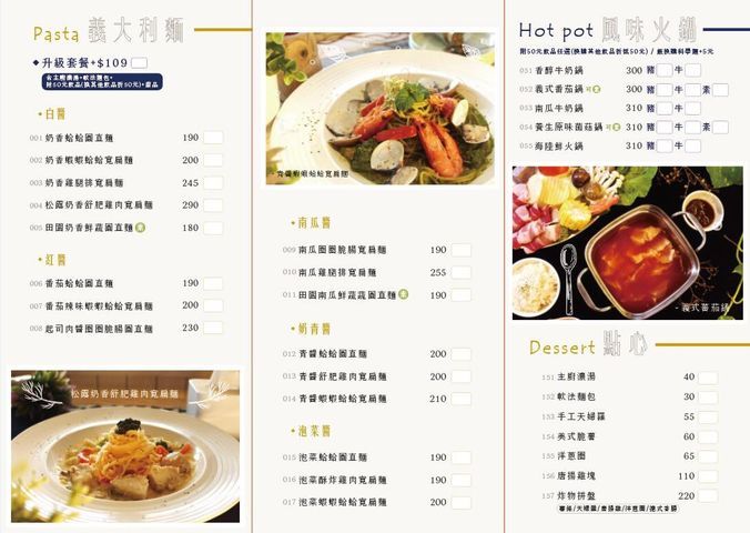 如果選擇加價 升級套餐,還能享有濃湯 +麵包+飲料+甜點