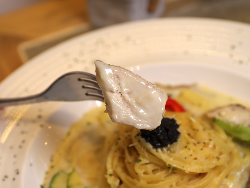使用 舒肥技術烹煮的雞肉,口感特別軟嫩,搭配香濃的奶香醬汁,也很讚!!!