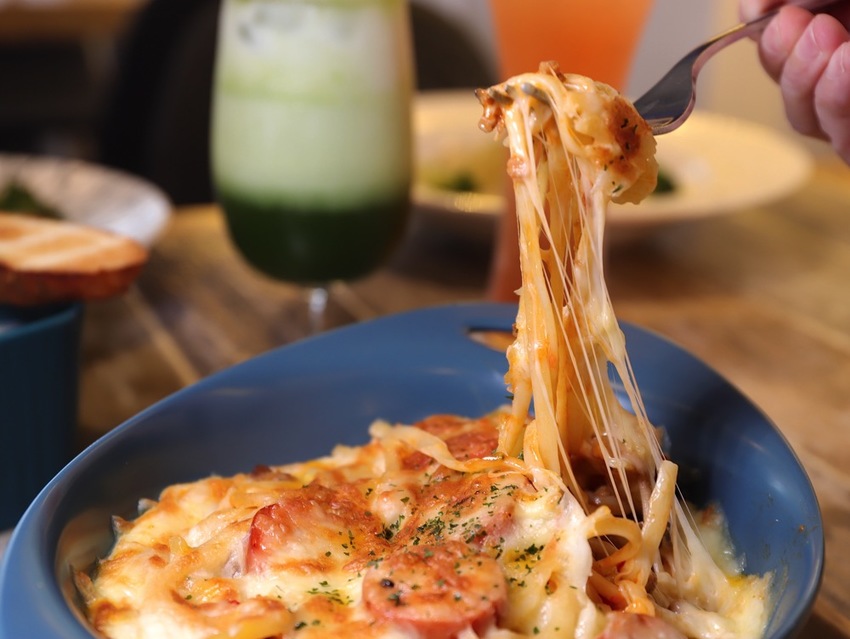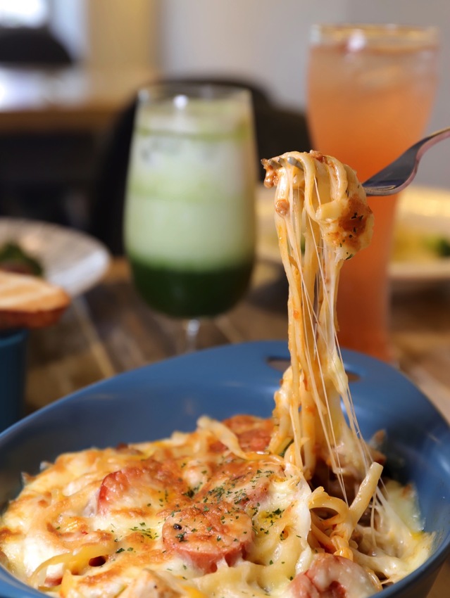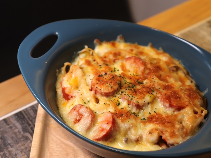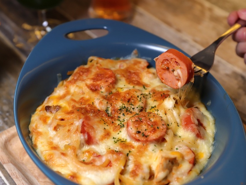 整份《焗烤番茄肉醬圈圈脆腸》有著滿滿的起司~
