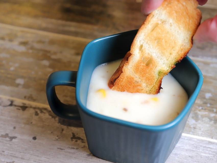 麵包熱烤的焦香,外皮吃起來很酥脆,但是又能吃到內部麵包的濕軟,搭配濃湯也很讚!!!