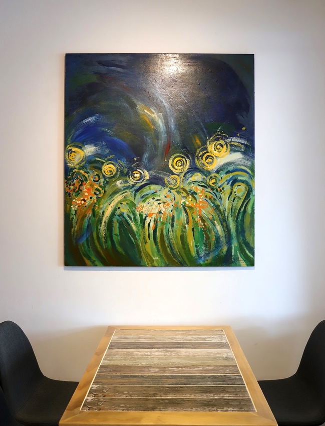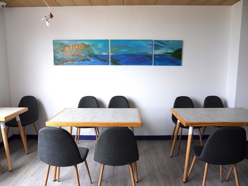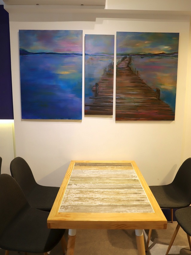 將整個空間用餐氛圍 營造得好有氣質~ 品嚐美味的餐點之餘,還能抬頭欣賞畫作