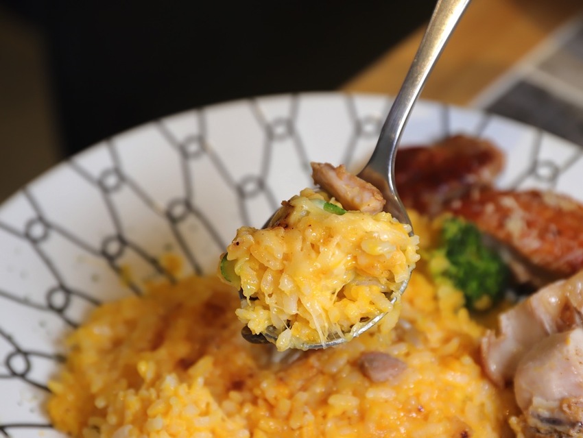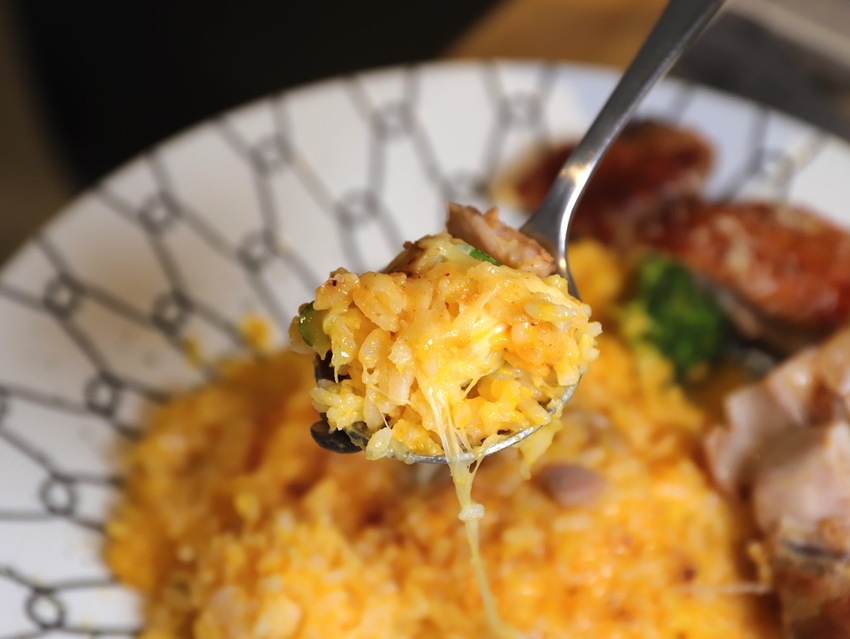 更厲害的是,燉飯裡有加上帕馬森起司,熱熱吃還會牽絲,增添香鹹起司滋味~