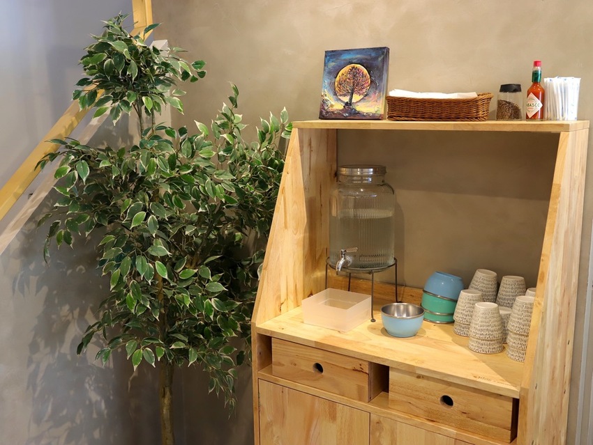 二樓也有自助餐具區: