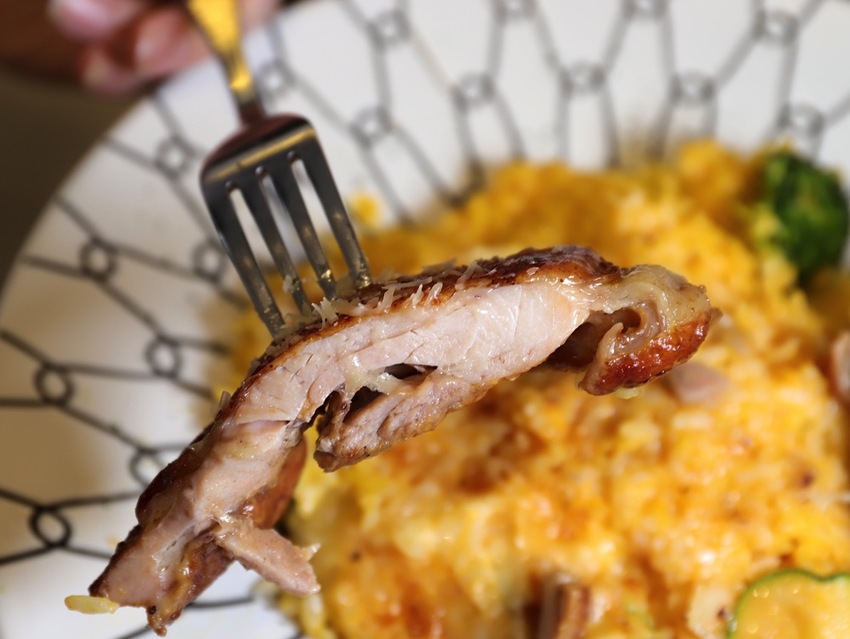 雞腿排 醃漬入口,吃起來軟嫩鮮甜