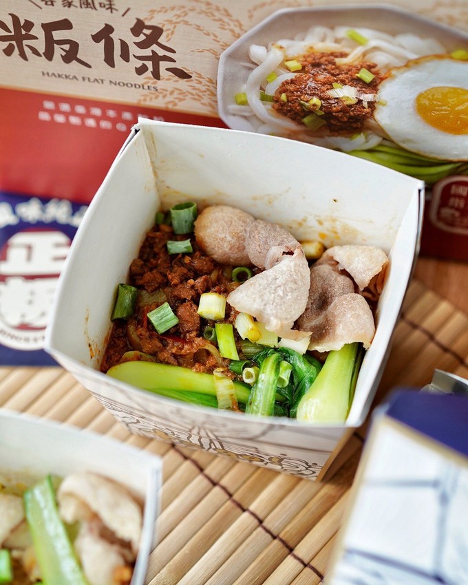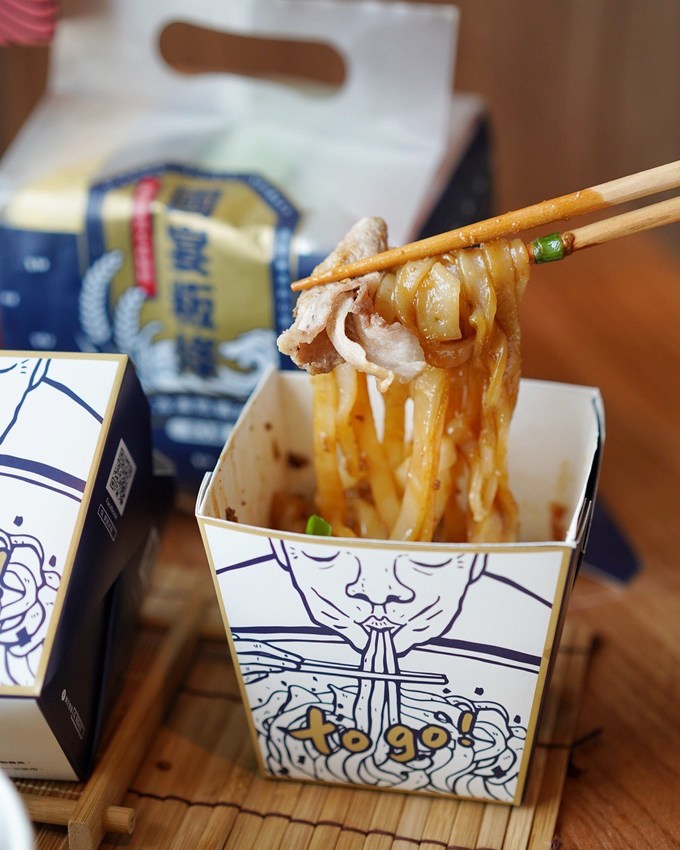 首先,先來推薦這款經典台味的「台灣肉燥粄條」,一打開就能聞到肉燥的香氣且肉燥醬給的還不少,上頭還有肉片、青江菜、蔥花等等。均勻拌開後,肉燥醬完美吸附在粄條上,口感相當Q彈有勁,我想這一定是招牌必點的口味之一!