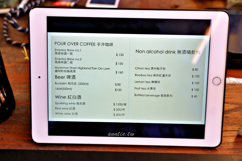 飲料搭配甜點套餐價220元,南非紅灌木茶喝起來就是國寶茶的味道,馬崗一號特調是咖啡,喝起來不會太苦澀,搭配甜點還不錯。