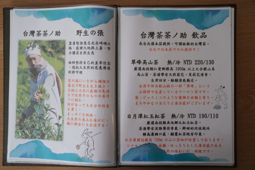 東京彩健茶莊的菜單比較特別的地方,是每翻一頁就會看到茶農、茶葉的簡介故事,讓你能夠更了解台灣與日本的茶葉文化。雖然說東京彩健茶莊是以喝茶為主的午茶店,除了茶點、茶飲之外,也有提供「自家製飯糰套餐」輕食,吃得飽又能好好飲茶~