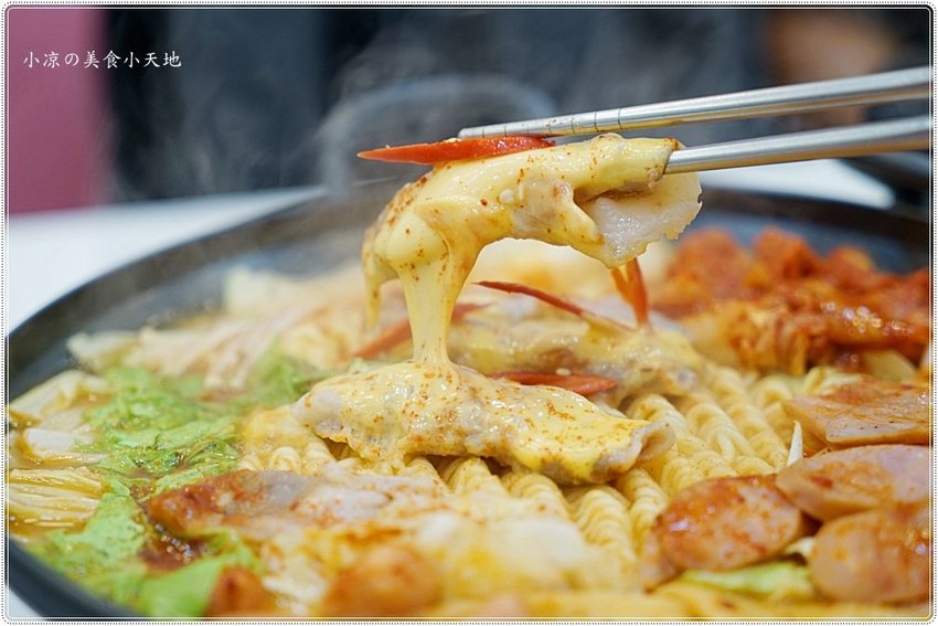 部隊鍋內的起司豬肉吃起來柔軟有勁、德式香腸的Q彈、年糕的軟Q以及麵條的滑順彈牙,再來上一口泡菜提味,可說是超級涮嘴啊!!! 當然也不能錯過我最愛的韓國魚板、經由湯汁的洗禮、鹹香嫩口更好吃!!