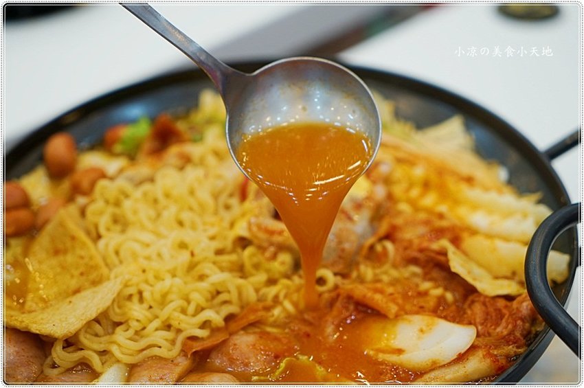 部隊鍋的湯頭滾到最後(無加湯情況)是很濃厚的,再食材吃完後、可留下點湯汁再拌入一碗白飯、打顆蛋進入,就是一碗韓式炒飯也可說是韓式炊飯,一整個吃下來讓人飽到天靈蓋!!