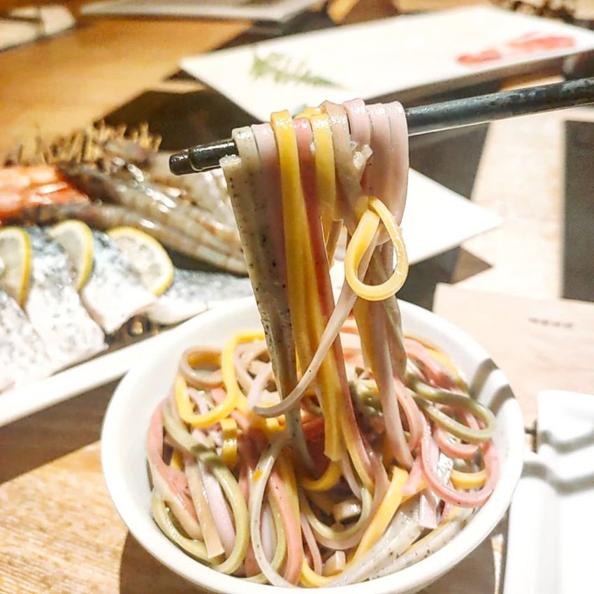 彩虹麵的顏色都來自天然蔬果,當中包含了蕎麥,紫地瓜,黑芝麻,南瓜,火龍果和地瓜葉。