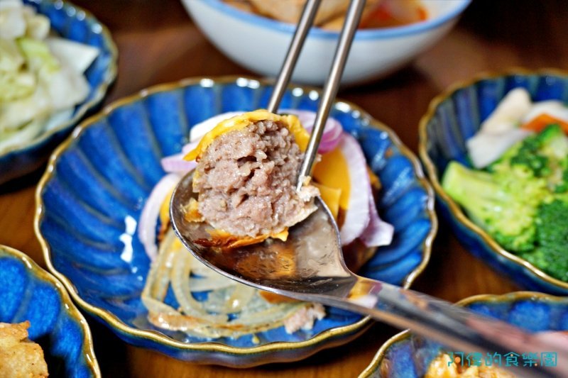 這個是牛肉漢堡排上面鋪著起司片及洋蔥,看了就好誘人。