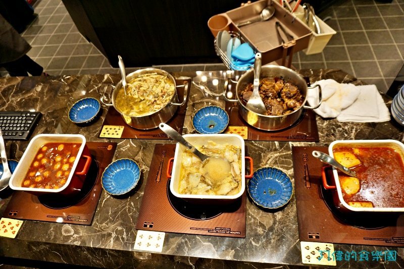 而除了前面玻璃櫃中的菜色,還有五道放在電磁爐上的熱菜。