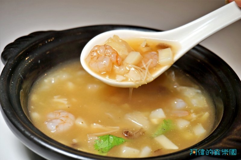 一人一份的干貝海鮮羹不用擔心好料被別人舀去,可以慢慢的、細細的品嚐羹湯及裡面的食材。