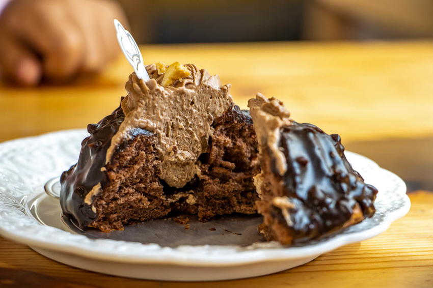 巧克力圓舞曲,巧克力蛋糕的外圍再淋上巧克力醬,上頭再放置了巧克力香緹,滿滿的巧克力卻又帶來了不同感受,輕柔滑順的巧克力香緹與微微苦韻的巧克力蛋糕,搭配合宜。