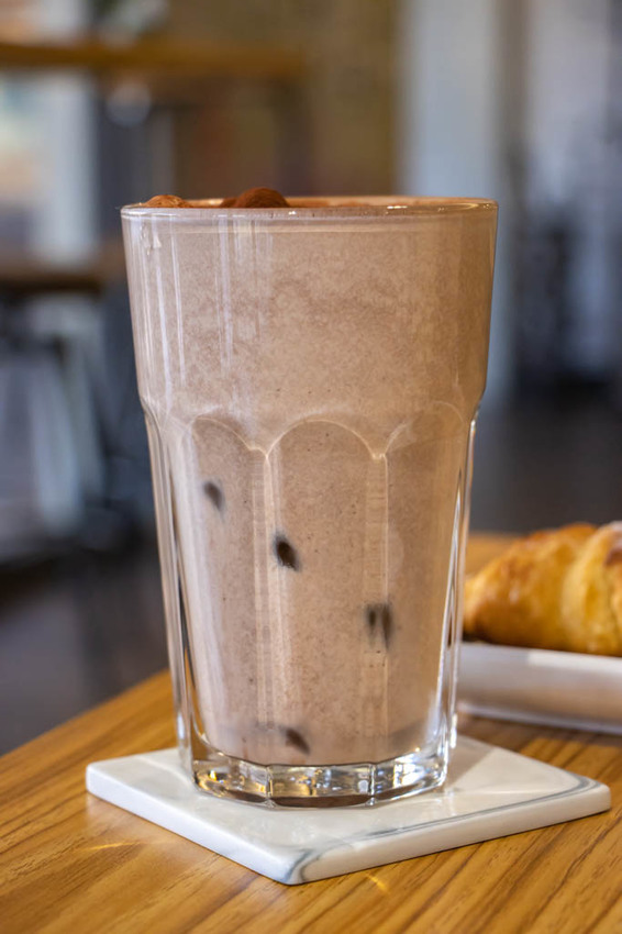 va巧克力牛奶,甜味有到位但不過頭,喝起來綿密細緻,巧克力的香不僅僅是表面上的可可粉,一整杯都很不錯,弄到最後這一杯上演著父子倆搶喝的局面。