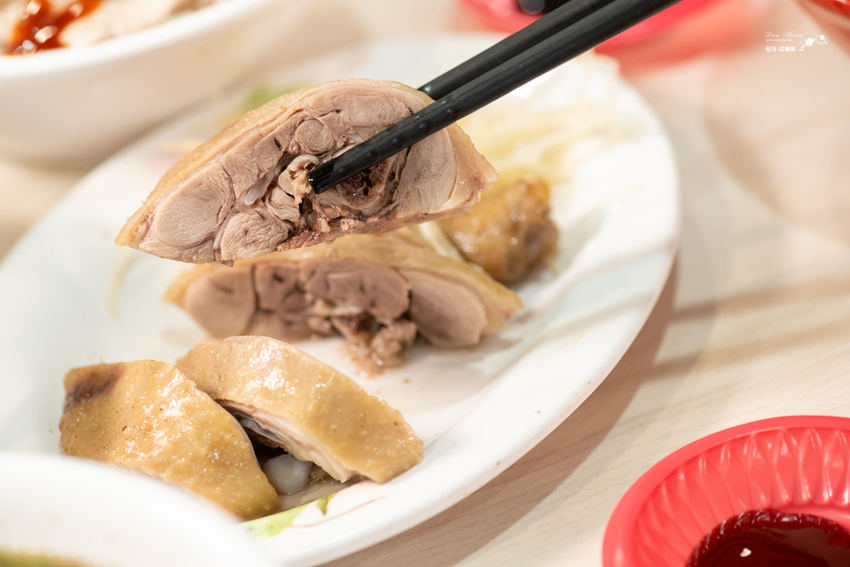 淋上特製高湯的鴨腿肉彈嫩鹹鮮,口感濃郁軟嫩,帶骨的滋味紮實,越嚼越有味,如果你是重口味愛好者,沾點東泉辣椒醬或甜辣醬,風味更迷人。