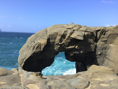 這裡因海風、海水侵蝕而形成現在的海蝕洞,搭配