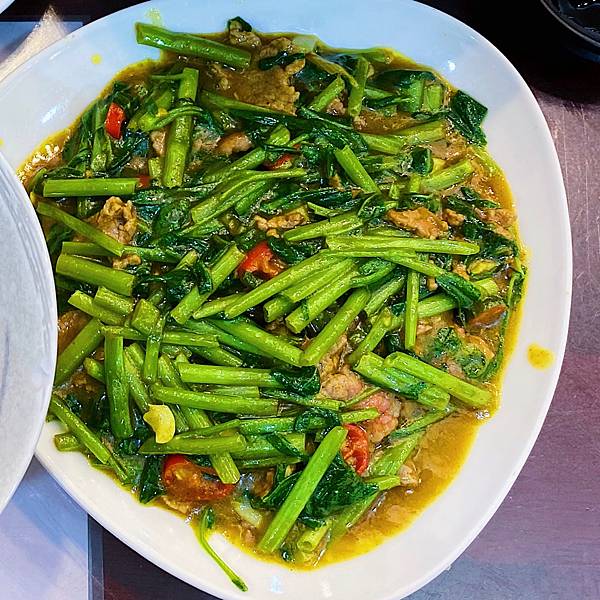連同空心菜一同拌炒