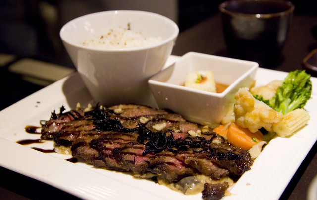賣相很棒的商午,淋在牛肉上的醬汁乍看之下還以為是炙燒的烤痕,