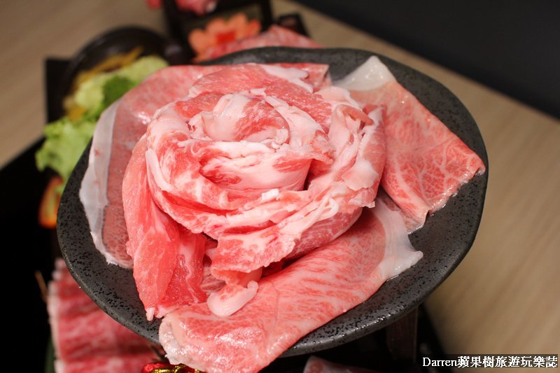 日本A5和牛,擺盤方面特別擺放成玫瑰花造型,加上肉片本身的細緻油花非常美,和牛是日本熊本A5和牛,和牛肉很適合來涮火鍋,肉質軟嫩細緻,加上和牛本身的油脂香氣,大大滿足口腹之慾啊