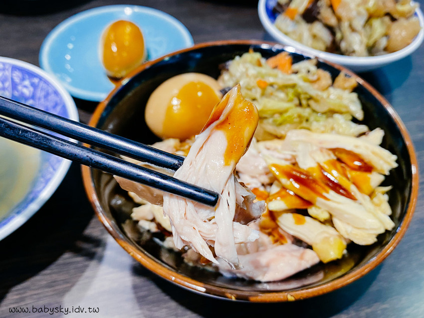和一般雞肉飯不同的,它不是雞肉絲,而應該稱為雞肉塊了!!數量滿滿地蓋在飯上,看了讓人十分滿足!