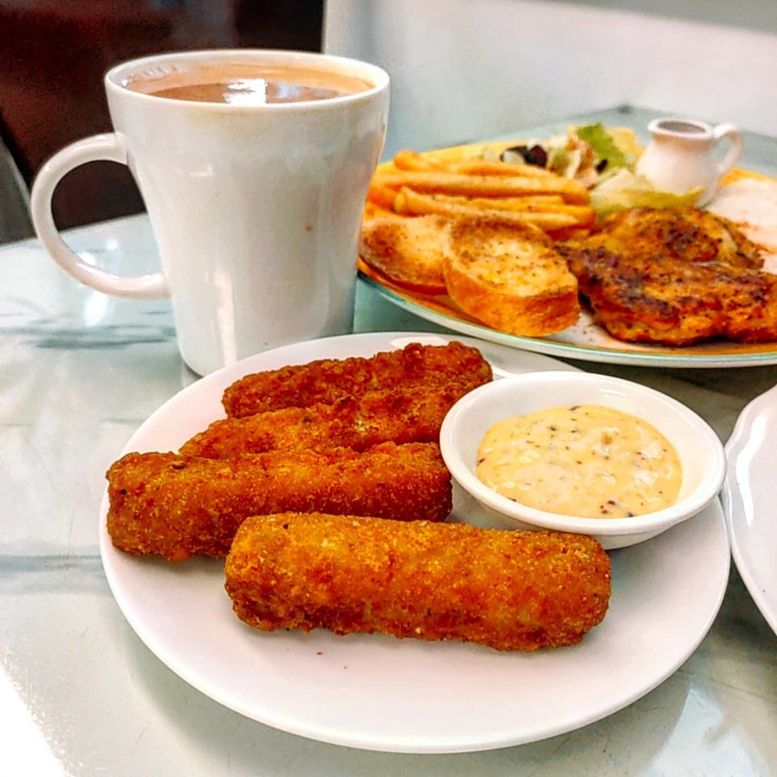 貴堡遞的炸物選項也頗多的,為了控制熱量,我們精挑細選了鱈魚條😝😝