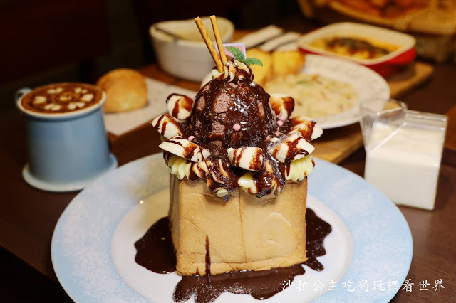 蜜糖吐司應該是女孩兒的最愛,沙拉今天點的是香蕉巧克力,上面有加一球冰淇淋,所以不能拍太久,拍完照要趕緊吃掉喔