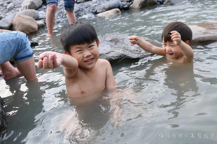 本來只是單純泡腳,小朋友忍不住脫光光玩水了